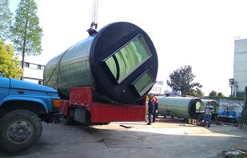 一體化預制泵站由頂蓋、玻璃鋼(GRP)筒體、底座、潛水泵、服務平臺、管道等部分組成,以滿足增壓提升排水要求的設備。可實現無人值守泵站。由于玻璃鋼密度輕,使用壽命長、占地面積小等特點而被應用到各個領域。