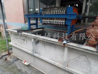 2. 調整后的廢水被壓入壓濾機進行泥水分離,污泥形成泥餅外運,清水進入中間水池;